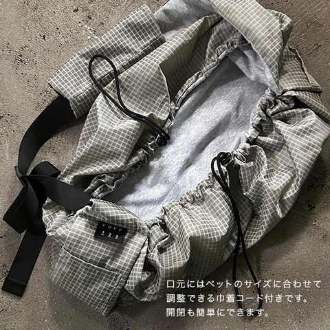 入り口には巾着式コードでペットのサイズに合わせて調整でき、しっかり固定されるので飛び出しを防止。