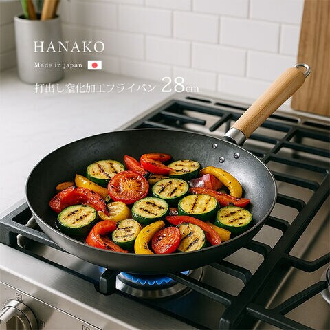 HANAKO+a 鉄フライパン 28cm 木ハンドル(山田工業所 鉄 打出 フライパン 鉄フライパンIH 鉄製フライパン 窒化処理 窒化鉄 窒化鉄フライパン 窒化加工 IH IH対応 28センチ 大きい 国産)