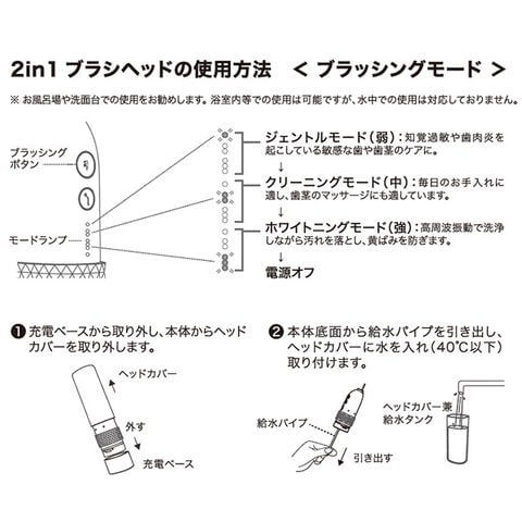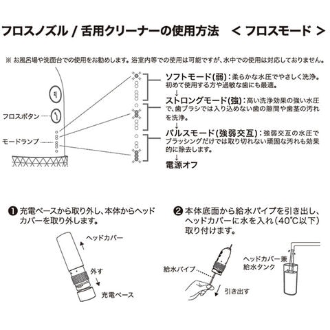 【付属品】充電用USBケーブル、2in1ブラシ(2個)、フロスノズル、舌用クリーナー、収納ケース