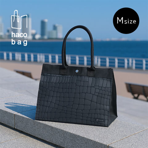 haco bag M クロコダイル 黒(ハコバッグ トートバッグ a4 自立 自立する レディース 通勤 軽い 軽量 サブ サブバッグ)