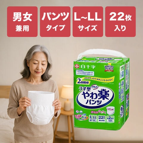 1-2W 【R】 白十字 サルバ やわ楽パンツ L~LLサイズ 22枚入(おむつ パンツ 紙おむつ 紙パンツ 大人用 大人用紙おむつ)