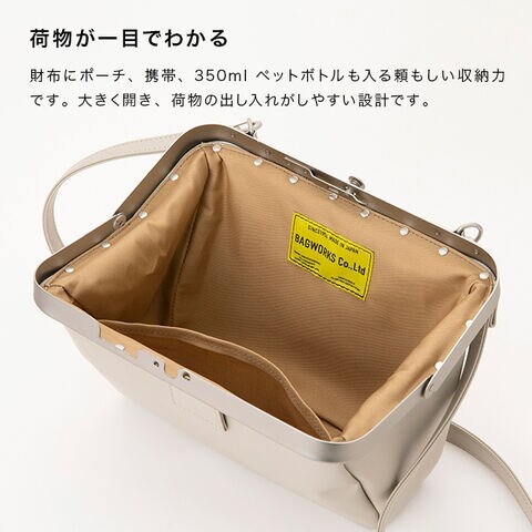 ・大きく開く口金で中身が見やすく、出し入れもスムーズです。