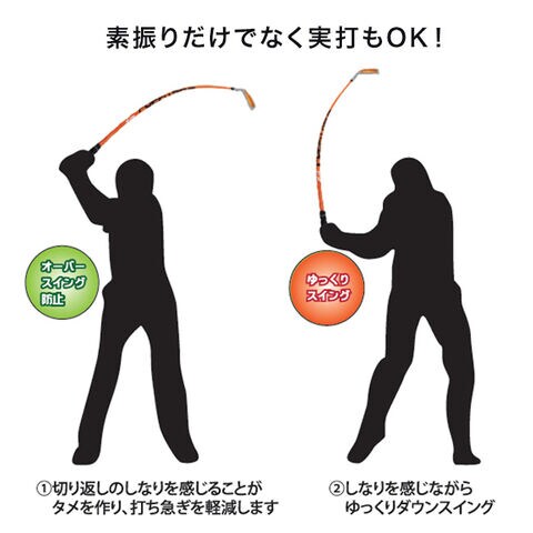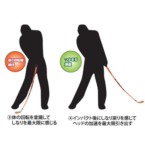 (1)オーバースイング防止に。切り返しのしなりを感じることで「タメ」を作り、打ち急ぎを軽減します。