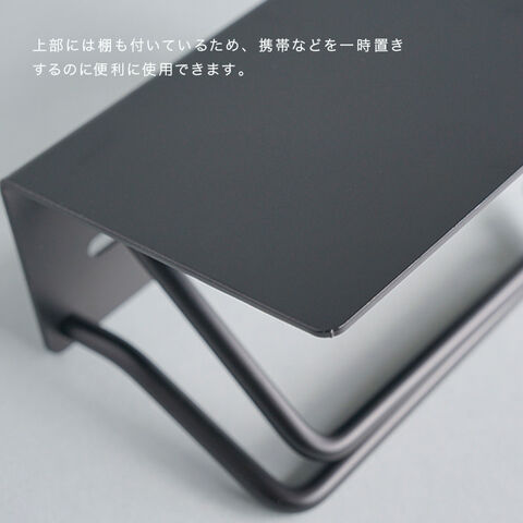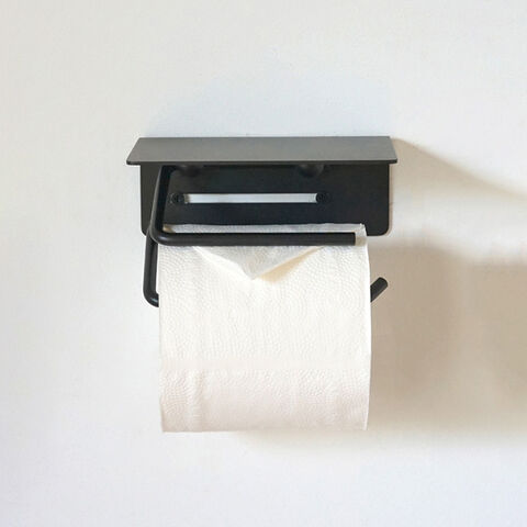 トイレットペーパーホルダー おしゃれ 1連 カバー シンプル 棚付き トイレットペーパー 1個 シングル 紙巻器 トイレ収納 台 壁付け 鉄 ブラック マット アイアン家具
