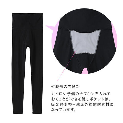 温活 冷え対策 レギンス レディース サニタリー 生理 月経 インナー 日本製 黒 ブラック お腹 カイロ ポケット付き お腹周り 足 脚 冷え 対策 防寒