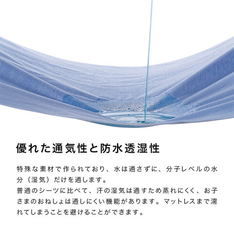 生地の裏側には、通気性と伸縮性にすぐれたウレタン膜をラミネート。汗や湿気を逃しつつ、水分の浸透を防ぎます。寝具を清潔に保てて◎。