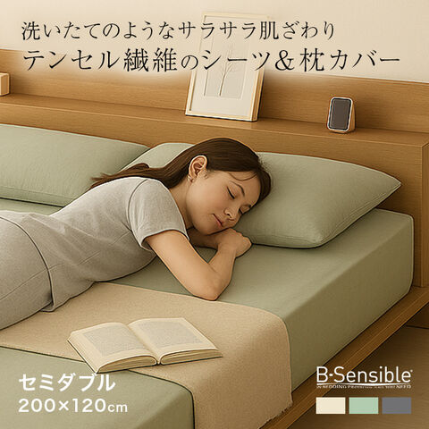B-Sensible 2点セット ボックスシーツ セミダブル&ピローケース(防水シーツ セミダブル ボックス おねしょ)【グリーンアロエ】※1枚目の画像は代表イメージのため色・柄が異なる場合がございます。2枚目以降で色・柄をご確認下さい。