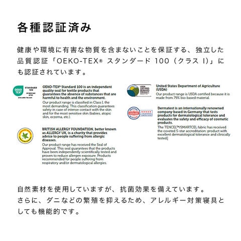 ●世界基準で認証されている繊維製品の証「STANDARD 100 by OEKO-TEX」を取得。赤ちゃんや肌の敏感な方にも。