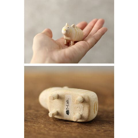 素材に使用している木は南方系の白木で、小さな耳や足も全て無垢材から掘り出しています。