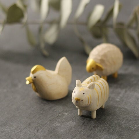 かわいい小さな木彫りの干支。