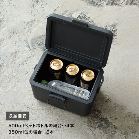 内部容量は3.8リットルで、350ml缶が縦置きで6本、ペットボトルや500ml缶は横に寝かせて4本収納が可能です。