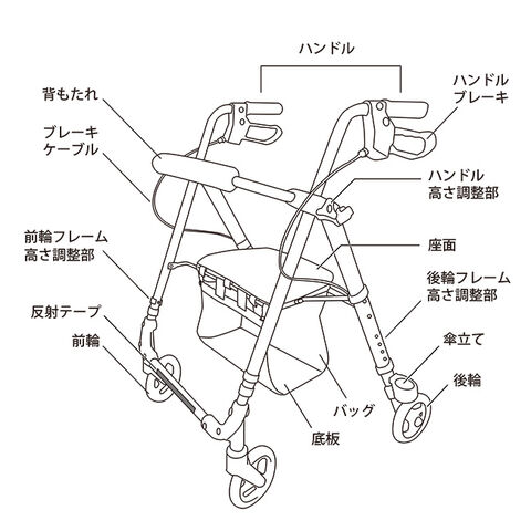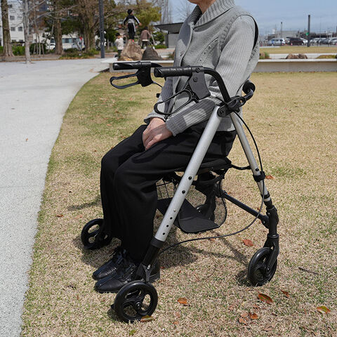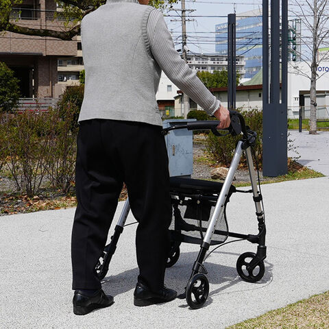 シルバー世代の外出を快適にサポートする手押し歩行車。体重を支えながら動かすことができ、背筋を曲げずに安定した姿勢が保てます。