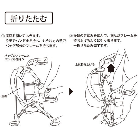 【サイズ(約)】[使用時]縦64×横73×高さ90.5~96.5cm [収納時]縦64×横39×高さ93~112.5cm [座面高さ]47~54.5cm [座面]37×24cm