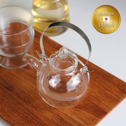 コロンとした愛らしく美しい形状が特徴的の耐熱ガラス製のポット。透明な本体にステンレス製の取っ手が、在るだけで美しいデザイン。約250ml(1人用)のお茶が楽しめるミニサイズ。カフェや和菓子屋さんなどの業務用としてもおすすめです。