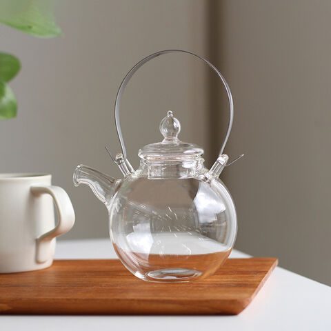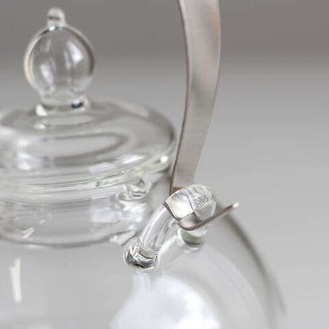 透明度が高く、ポットの中の様子が見えるため、緑茶、紅茶、ハーブティー、お花のお茶、フルーツティー…などなど、いろんなお茶を見て愉しむこともできます。丸型の形状に、茶漉しは注ぎ口に挿入するワイヤー式のため、茶葉がジャンピングする様も見れます。