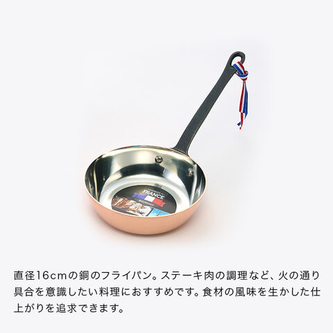 BAUMALU ボウマル 銅のフライパン 16cm(銅 フライパン 小さい 小さいサイズ 一人暮らし 一人用 ステーキ 銅製 銅製品 おしゃれ かわいい 浅型フライパン ミニ ガス ギフト プレゼント)