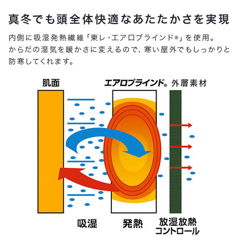 ・からだから出る湿気を熱に変換し、頭全体をじんわり暖めます。