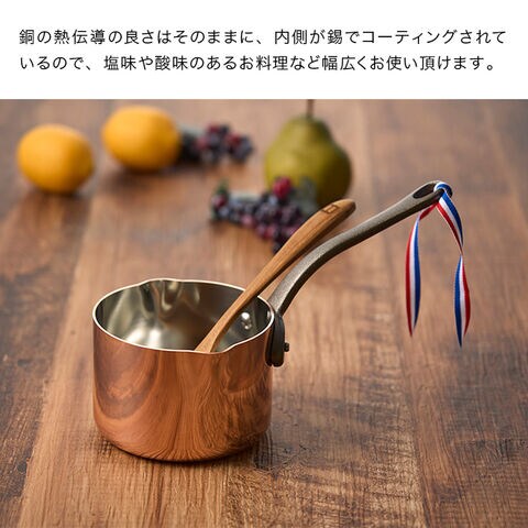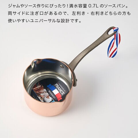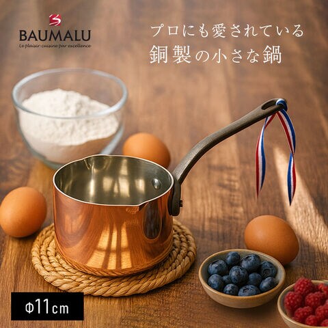 BAUMALU ボウマル 銅の小さなソースパン 両口 11cm(鍋 ソースパン ミニ 片手 小鍋 小さい 片手鍋 銅 揚げ物 調理器具)