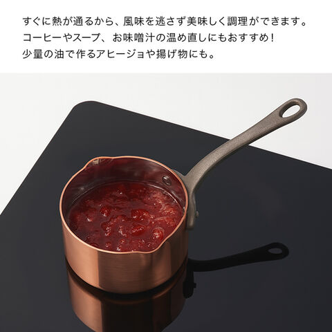 ・直径約11cmのコンパクトサイズながら、ボウマルの大きな銅鍋と同じ厚み・製法で作られています。