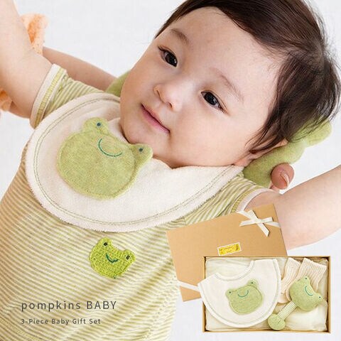 1-2W POMPKINS ポプキンズ エシカルコレクション かえる ギフトセット(出産祝い 男の子 セット スタイ 日本製 出産 祝い)
