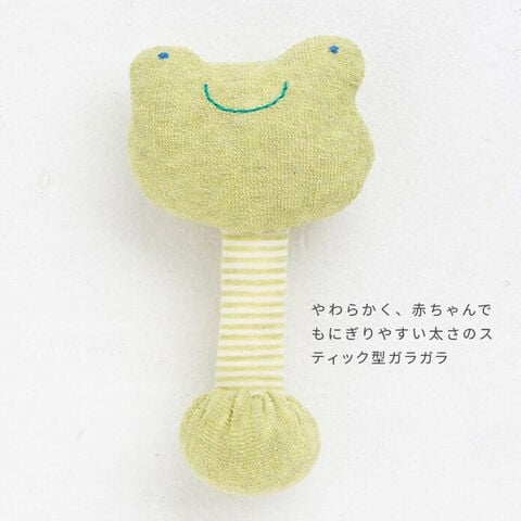 ガラガラは握りやすいスティックタイプで、振ると音が鳴ります。