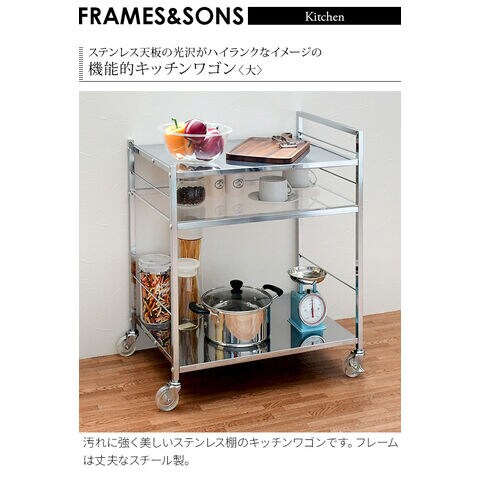 メーカー直送FRAMES&SONS ステン天板キッチンワゴン 大 DS07-1393(キャスター付き キッチンワゴン 調理台 作業台 ステンレス)