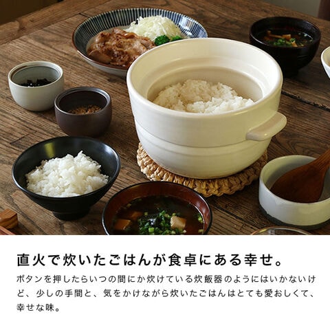 プクプクと炊き上がる音や湯気を感じながら、幸せな食卓を楽しむための道具です。