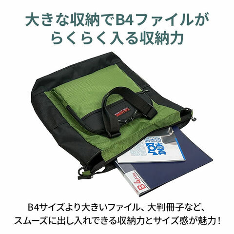 A3サイズまで入るため、書類やファイルを折らずに持ち運べます。参考書やバインダーも入るので、仕事、習い事、通学、どんなシーンにも対応します。