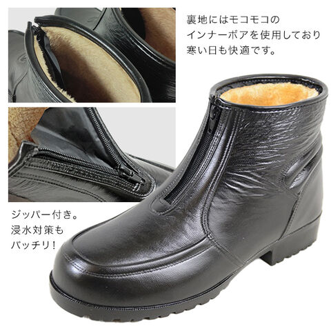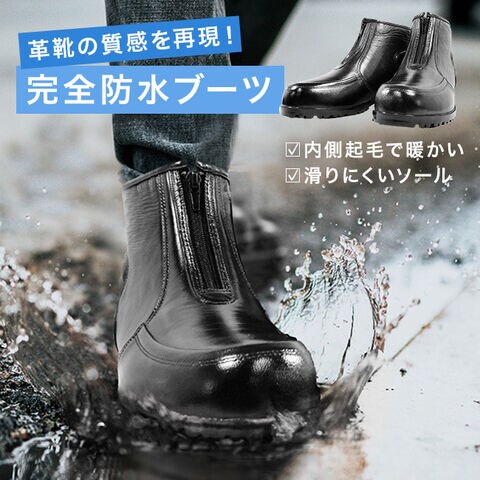 ・革の質感を再現した表面で、スーツにもなじむ完全防水スラッシュブーツです。