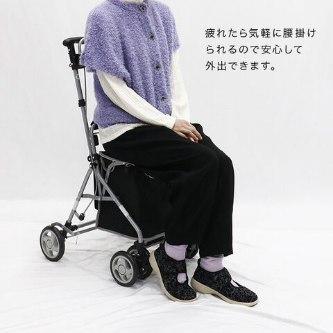 お買い物や散歩が不安になってきた方の外出をサポートするカートです。疲れたら座って休める「座面付き」で、ベンチが近くにない場所でも安心して休憩ができます。無理せず自分のペースで外出を楽しめます。