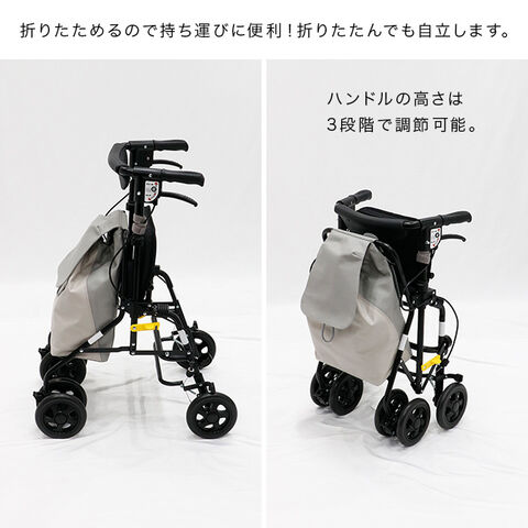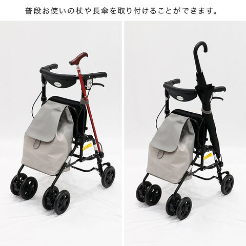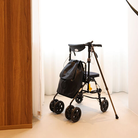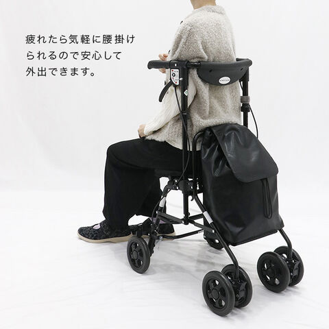 歩行をサポートしながら、休憩したいときにはすぐ座れる座面付きカートです。
