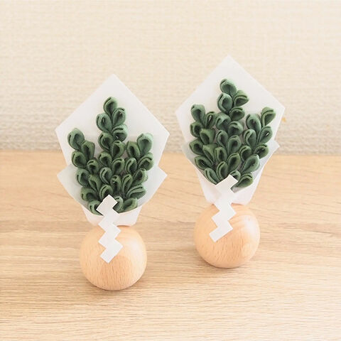 セットの榊は、つまみ細工で一枚一枚丁寧に仕立てた枯れない榊です。