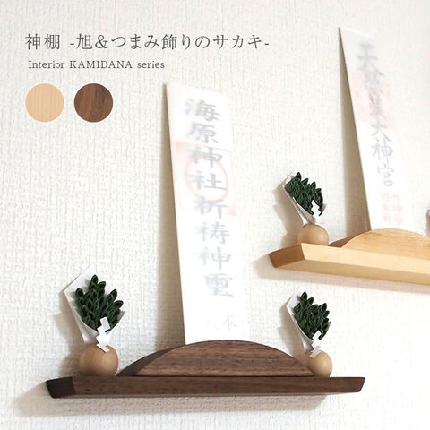 1-2W 【メイプル】 神棚 旭&つまみ飾りのサカキのセット(お札立て 木製 神棚 壁掛け おしゃれ シンプル 榊 造花 日本製 モダン) ※1枚目の画像は代表イメージのため色・柄が異なる場合がございます。2枚目以降で色・柄をご確認下さい。
