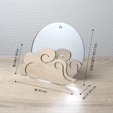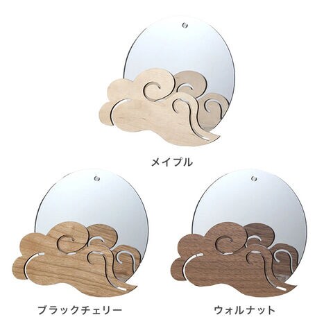 ・鏡と木材の雲モチーフが、やさしい印象を演出。