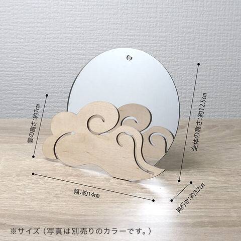 ・鏡と木材の雲モチーフが、やさしい印象を演出。