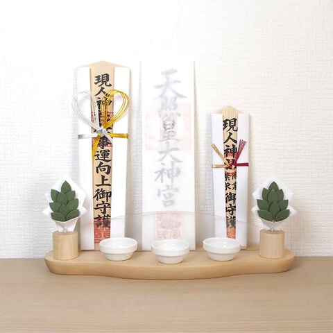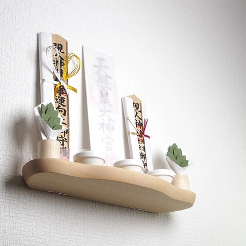 【付属品】神棚本体、枯れないサカキ2本、お供え皿3枚、アクリル仕切り板、石膏ボードピン※付属ピンは石膏ボード専用です。
