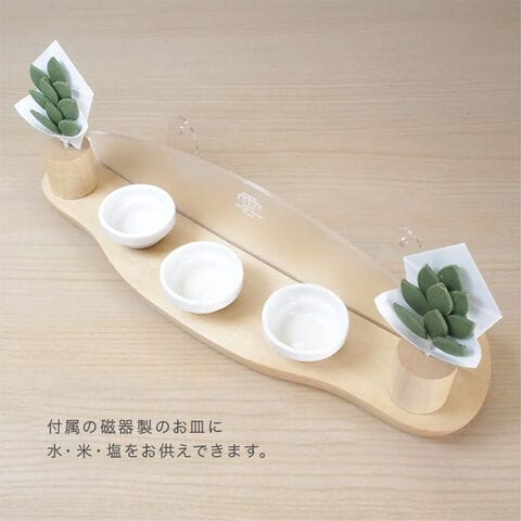 【素材】[台座]メイプル無垢材(アルドボスオイル仕上げ) [仕切り板]アクリル(フロスト加工) [サカキ]綿、アクリル、針金、メイプル無垢材 [お供え皿]磁器