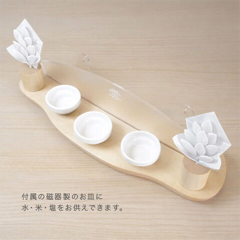 【素材】[台座]メイプル無垢材(アルドボスオイル仕上げ) [仕切り板]アクリル(フロスト加工) [サカキ]綿、アクリル、針金、メイプル無垢材 [お供え皿]磁器
