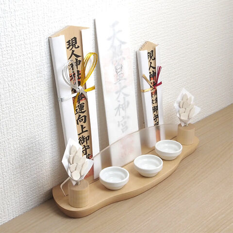 【付属品】神棚本体、枯れないサカキ2本、お供え皿3枚、アクリル仕切り板、石膏ボードピン※付属ピンは石膏ボード専用です。