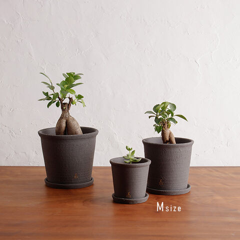 【F】 かもしか花卉店 かもしかポット&ソーサー M 黒土(植木鉢 受け皿 セット 4.5号 受け皿付き 丸 穴 あき 土物 プランター)