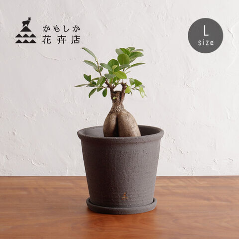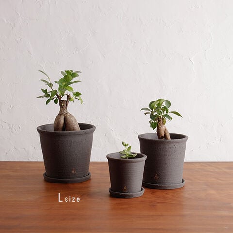 【F】 かもしか花卉店 かもしかポット&ソーサー L 黒土(植木鉢 受け皿 セット 4.5号 受け皿付き 丸 穴 あき 土物 プランター)