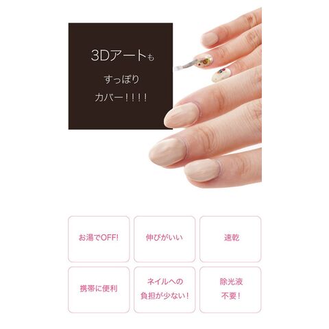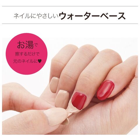 伸びがよく、速乾性。除光液は不要で、お湯で擦るだけで剥がすことができます。