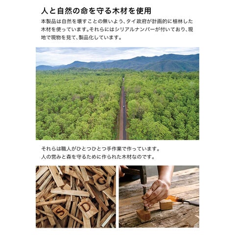 本製品は木材の端材を組み合わせて作られています。つなぎ目、節、キズ、色の違い、小さな穴やシミ、独特な模様…それらは全て大自然の中で木が生きてきた証拠であり、自然が作り出した芸術品です。それを職人がひとつひとつ手彫りして仕上げています。