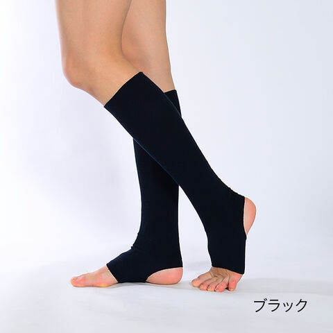 ひざ下までを包み込むショート丈。ブラック・グレーの落ち着いたカラーで、レッスンや日常生活、就寝時にも使いやすいデザインです。