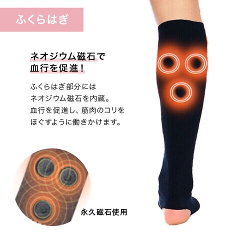 ふくらはぎ部分にはネオジウム磁石を内蔵。装着部位の血行を促進し、筋肉のコリをほぐすように働きかけます。