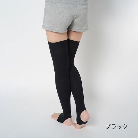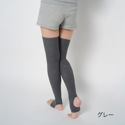 ひざ・太ももまで届くロング丈。ブラック・グレーの落ち着いたカラーで、レッスンや日常生活、就寝時にも使いやすいデザインです。