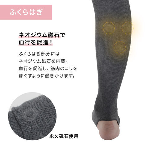 ふくらはぎ部分にはネオジウム磁石を内蔵。装着部位の血行を促進し、筋肉のコリをほぐすように働きかけます。