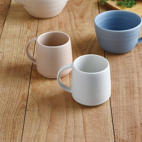 くろ挽きの手跡が残る表面と丸いフォルムが可愛いマグカップ。