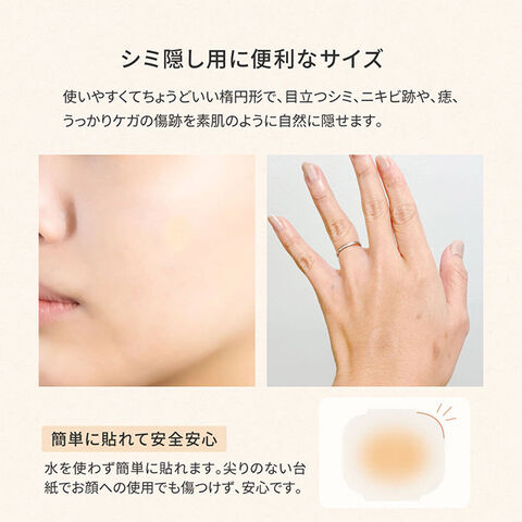 ●シミ、キズ、アザ、ニキビ跡、虫刺され跡、ホクロなどを隠すのに便利なサイズ感と形。