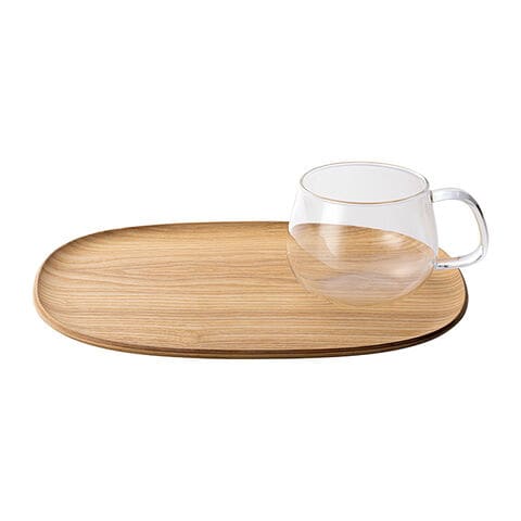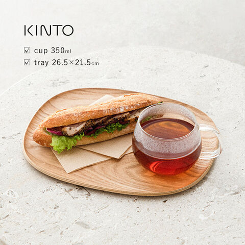 【F】KINTO キントー UNITEA カップ&トレイ 265mm ウィロー(ガラス カップ 350ml 木製 トレイ セット おしゃれ トレー 紅茶 コーヒー ホット お茶 ガラスカップ 木 お盆 おぼん 小さい)